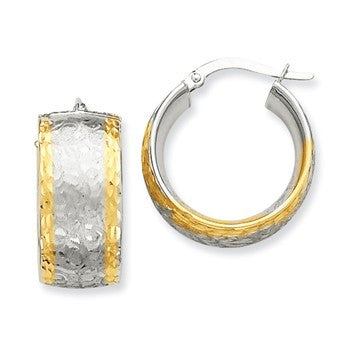 White Rhodium Plated 14k Yellow Gold Diamond-cut Hoop Earrings