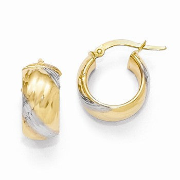 White Rhodium Plated 14k Yellow Gold Polished Hinged Hoop Earrings