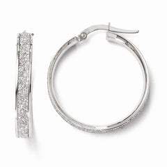 Metal: 14k White GoldLength:29 mmWidth:14 mmThickness:3.75 mmGlitter infusedFree U.S. Shipping for orders over $99 Protected by our 30-Day Risk Free Returns!