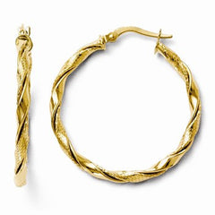 Metal: 14k Yellow GoldLength:30 mmWidth:30 mmThickness:2.5Finish:PolishedTexture: TwistedFree U.S. Shipping for orders over $99 Protected by our 30-Day Risk Free Returns!