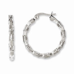 Metal: Stainless SteelLength:10 mmThickness:5 mmEarring Closure: Post & NotchFinish:PolishedFeature: HingedFree U.S. Shipping for orders over $99 Protected by our 30-Day Risk Free Returns!