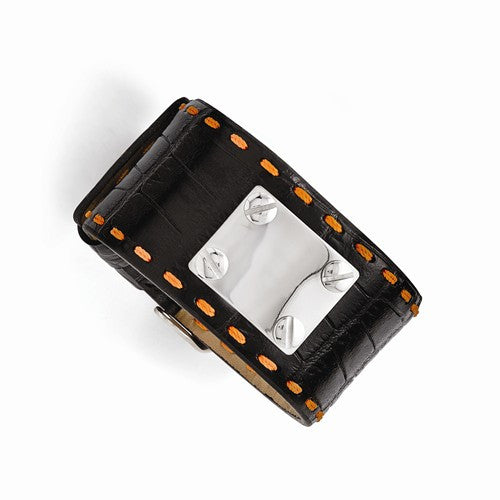 Stainless Steel Black Leather Orange Stitch Buckle Id Bracelet