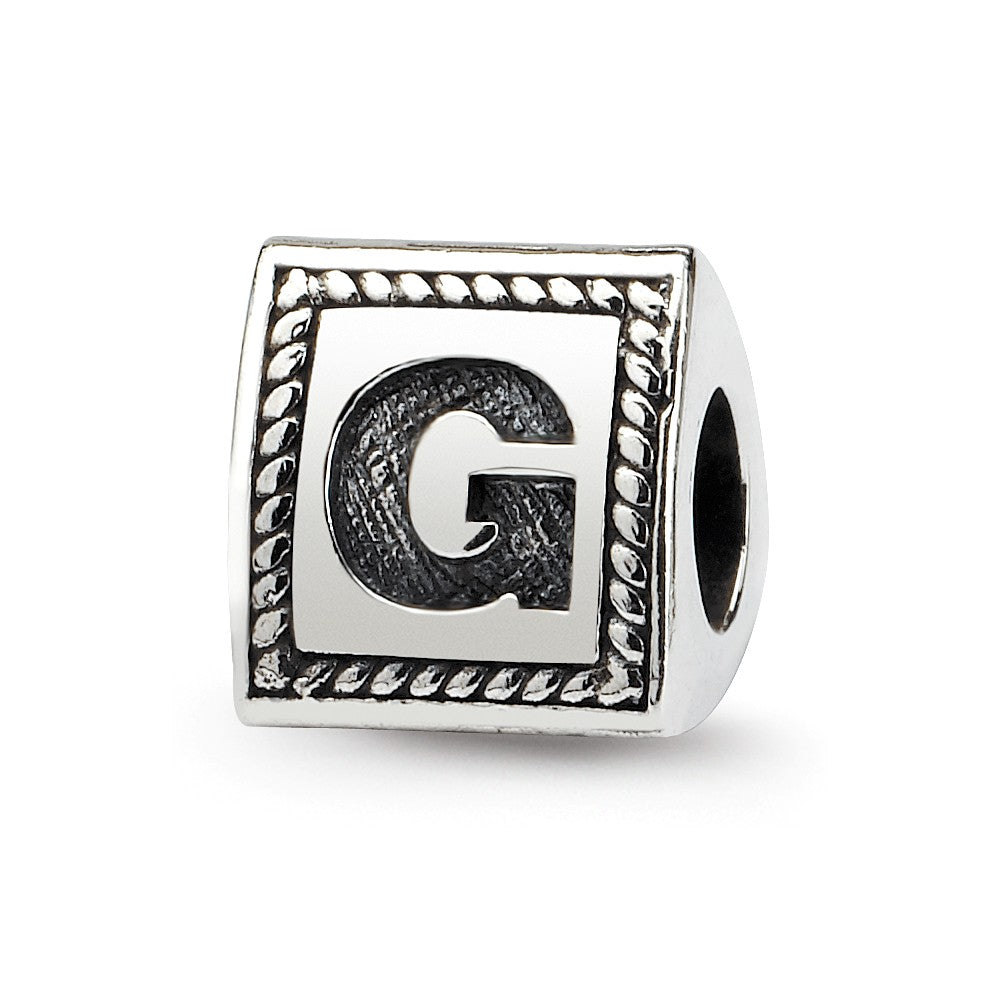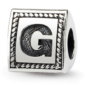 Letter G Triangle Block Charm Bead in Sterling Silver