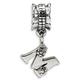 Sterling Silver Letter M Dangle Bead Charm hide-image