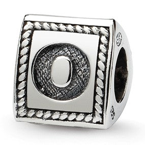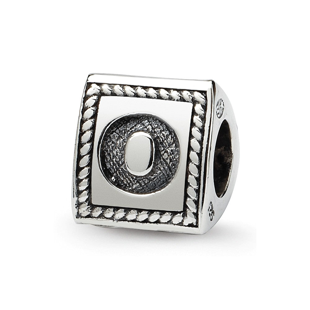 Letter O Triangle Block Charm Bead in Sterling Silver