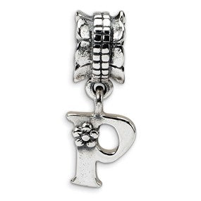 Sterling Silver Letter P Dangle Bead Charm hide-image
