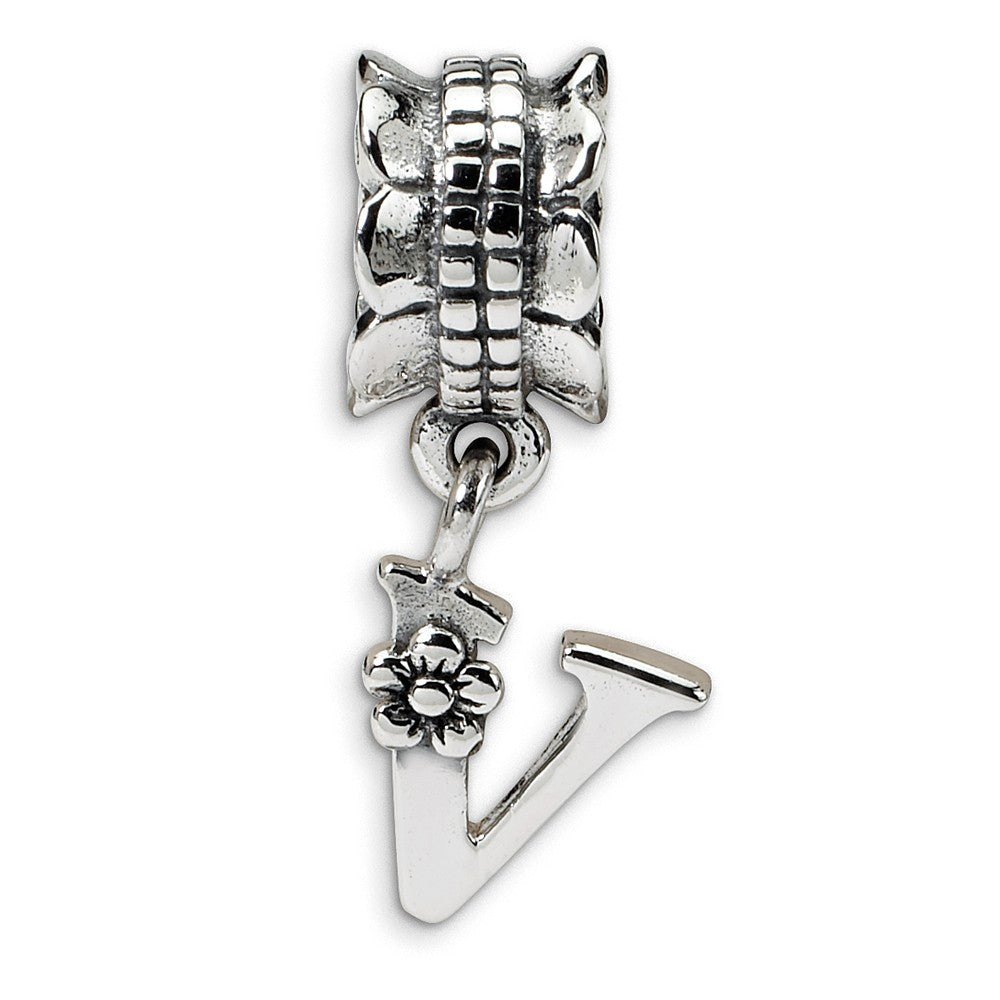 Sterling Silver Letter V Dangle Bead Charm hide-image