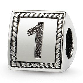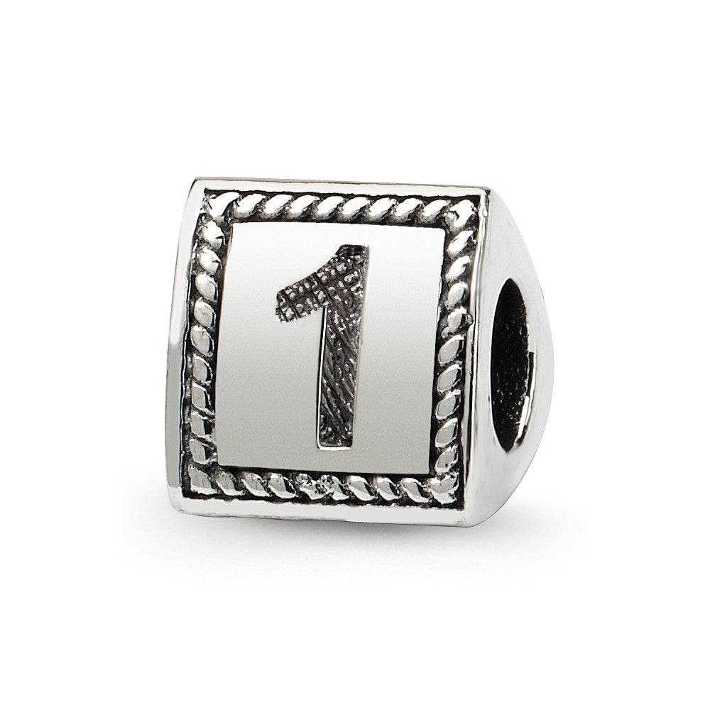 Number 1 Triangle Block Charm Bead in Sterling Silver