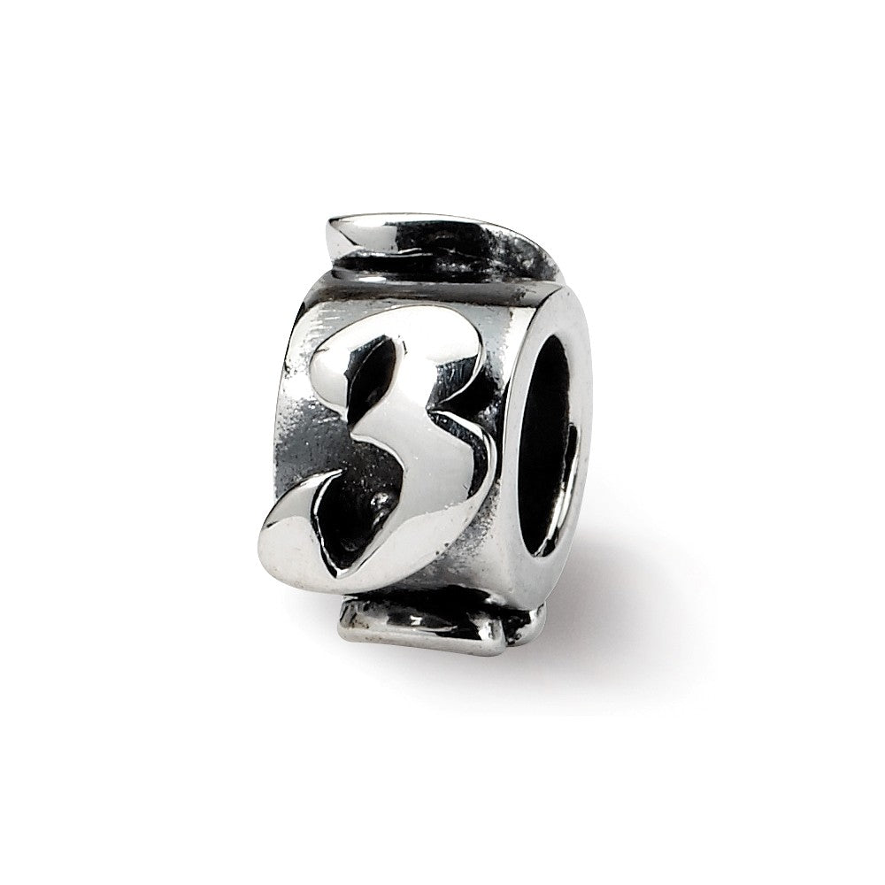 Sterling Silver Number 3 Message Bead Charm hide-image