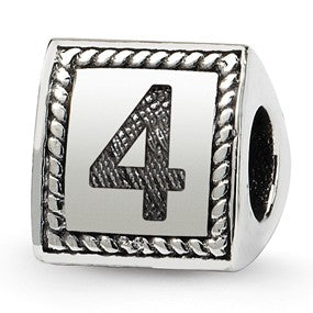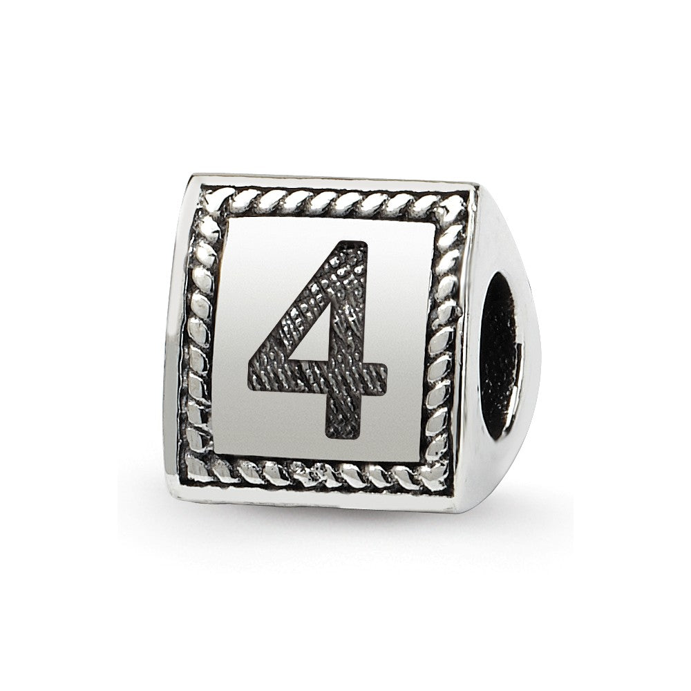 Number 4 Triangle Block Charm Bead in Sterling Silver