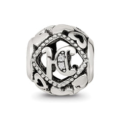 Metal: Sterling SilverBead opening Diameter: 3.8 mmCharm Length: 10.87 mmCharm Width: 10.02 mmStone Type: Cubic Zirconia (CZ)Stone Creation Method: SyntheticStone Color: WhiteManufacturing Process: CastedSolidFits Pandora,Biagi,Chamilia & European Bracelets