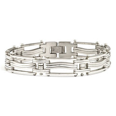 Stainless Steel Brushed Polished Wavy Sq Link Bracelet