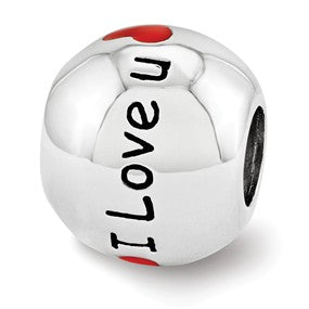 Black & Red Enamel I LOVE U Charm Bead in Sterling Silver