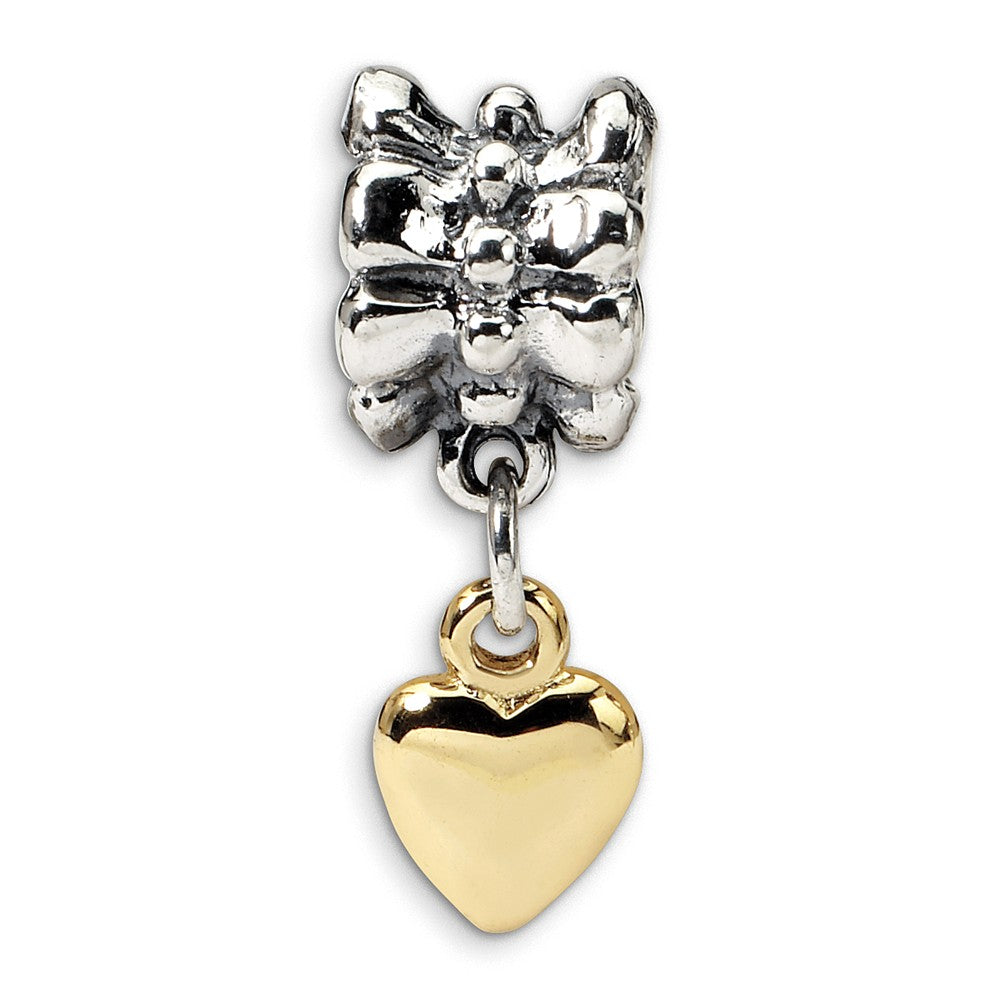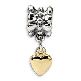 Heart Charm Dangle Bead in Sterling Silver & Gold Plated