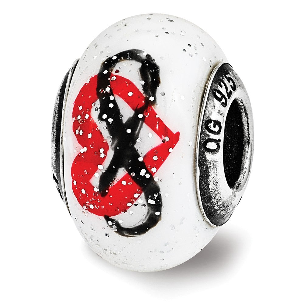 Heart Infinity Murrano Glass Charm Bead in Sterling Silver