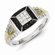 Sterling Silver and Gold Plated Black & White Diamond Men's Ring