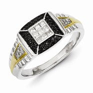 Sterling Silver and Gold Plated Black & White Diamond Men's Ring