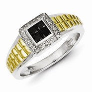 Sterling Silver and Gold Plated Black & White Diamond Square Men's Ring