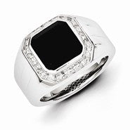 Sterling Silver Diamond & Black Onyx Square Men's Ring