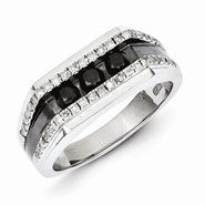 Sterling Silver w/Rhodium Plated Black and White Diamond Men's Ring
