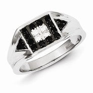 Sterling Silver w/Rhodium Plated Black and White Diamond Men's Ring