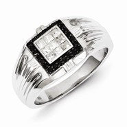 Sterling Silver w/Rhodium Plated Black and White Diamond Men's Ring
