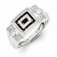 Sterling Silver w/Rhodium Plated Black and White Diamond Men's Ring
