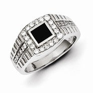 Sterling Silver w/Rhodium Plated Diamond & Black Onyx Men's Ring