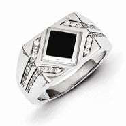 Sterling Silver w/Rhodium Plated Diamond & Black Onyx Men's Ring