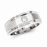Sterling Silver w/Rhodium Plated Satin & Polished Diamond Men's Ring
