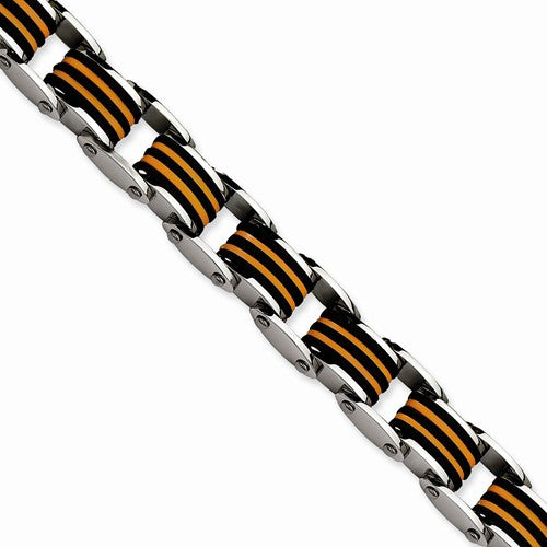 Stainless Steel Black & Orange Polished Yurethane Bracelet