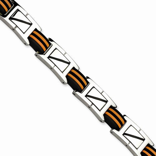 Stainless Steel Black & Orange Polished Yurethane Bracelet