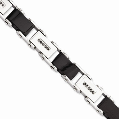 Stainless Steel Black-Plated with Black Diamonds Bracelet