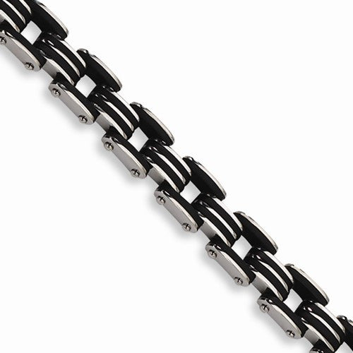 Stainless Steel Black Rubber Bracelet