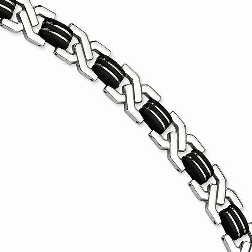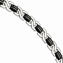 Stainless Steel Polished Black Polished Yurethane Bracelet