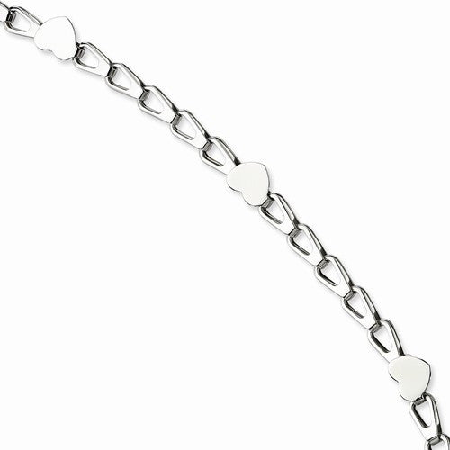Stainless Steel Polished Open Link with Hearts Bracelet
