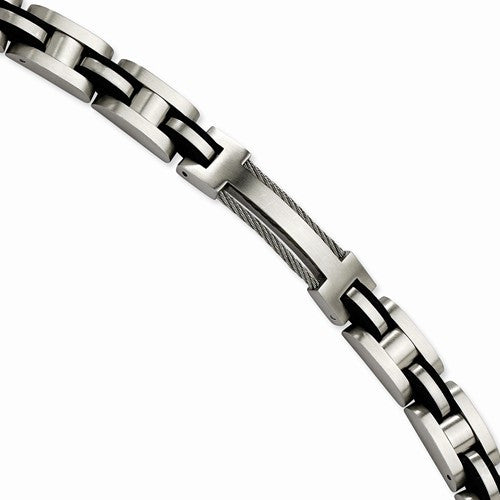 Stainless Steel Wire & Black Rubber Brushed Bracelet