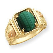 10k Tri-color Black Hills Gold Mens Malachite Ring