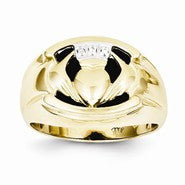 10k Yellow Gold Men's Diamond and Black Onyx Claddagh Ring