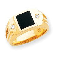 14k Yellow Gold Flat Top Ridged-Sides Complete Mens Diamond And Onyx Ring
