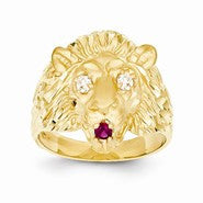 14k Yellow Gold Lion with CZ Eyes and Red Synthetic Tongue Ring