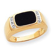 14k Yellow Gold Onyx & Diamond Mens Ring