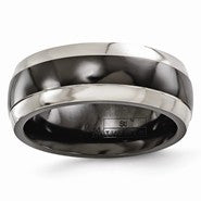 Black Titanium Domed with Cut Edges 7mm Wedding Band Ring