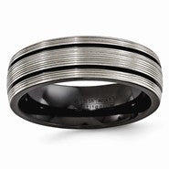 Black Titanium Grooves and Textured Lines 7mm Wedding Band Ring