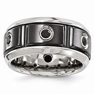Black Titanium Stainless Steel Silver Bezel Black Spinel Ring