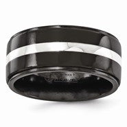 Black Titanium & Sterling Silver Inlay 10mm Wedding Band Ring