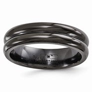 Black Titanium with Grooves 6mm Wedding Band Ring