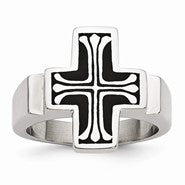 Stainless Steel Enameled Polished Cross Ring