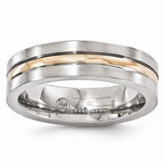 Titanium and 14k Rose Gold Grooved 6mm Wedding Band Ring