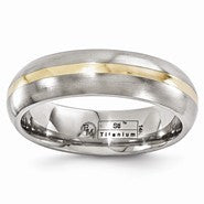 Titanium and 14k Yellow Gold Brushed 6mm Wedding Band Ring